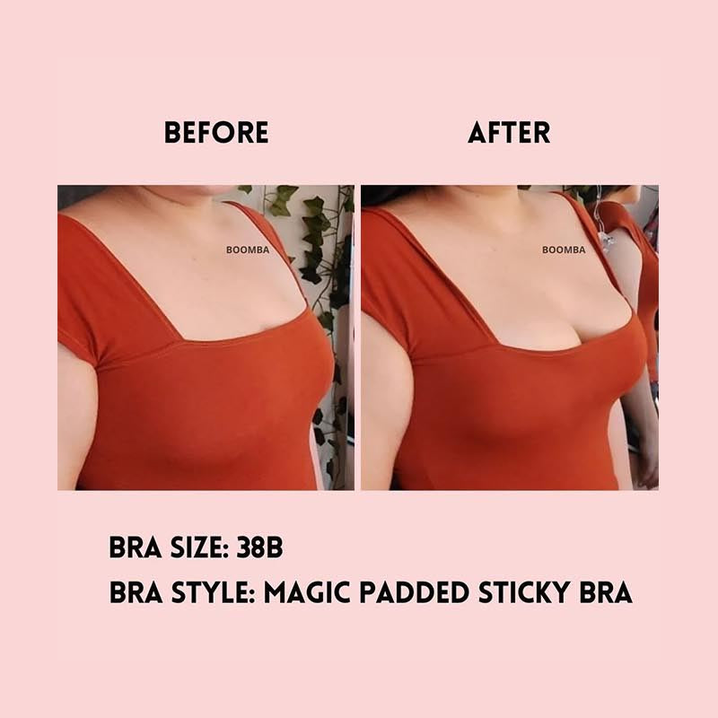 Good to know: the BOOMBA Magic Padded Sticky Bra is also popular with shoppers who are looking for a seamless sticky bra, a push-up sticky bra, a wedding bra, an invisible bra, a sweat proof bra or a cleavage-creating bra. And yes, the Magic Padded Sticky Bra helps to create instant cleavage and increase volume, this is the ultimate holiday bra every woman should know, and is perfect for loose outfits which need cleavage and push up!